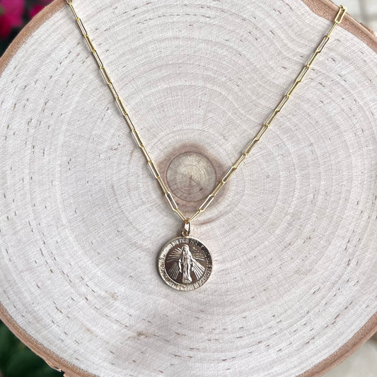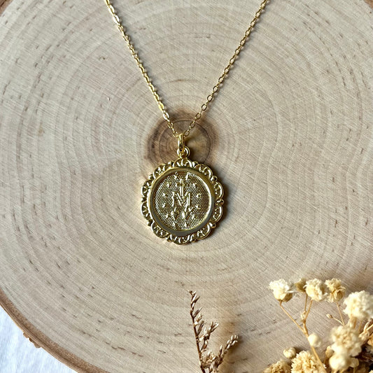 ‘Marielle’ Scalloped Miraculous Medal Necklace