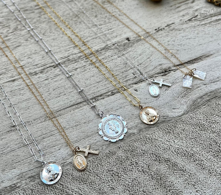 ‘Marielle’ Scalloped Miraculous Medal Necklace